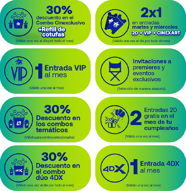 CINEX como en las ofertas, descripciones, cuentas o